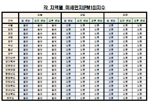 °è¼ÓÇØ¼ Àü±¹ÀÇ ´ë±â È帧ÀÌ ¿øÈ°ÇÏ°í ´ë±â¿À¿°¹°ÁúÀÇ Á¤Ã¼¡¤ÃàÀûµµ ¸¹Áö ¾Ê¾Æ ¹Ì¼¼¸ÕÁö¡¤Ãʹ̼¼¸ÕÁö ³óµµ´Â ¡®º¸Å롯 ´Ü°è¸¦ º¸À̰ڰí, Àڿܼ± Áö¼ö´Â Àü±¹ÀÌ ´ëü·Î ±¸¸§ÀÌ ¸¹°ÚÀ¸³ª ±× »çÀÌ·Î ÇÞºûÀÌ ºñÄ¡¸ç ¡®³ôÀ½; ´Ü°è°¡ ¿¹»óµÈ´Ù.