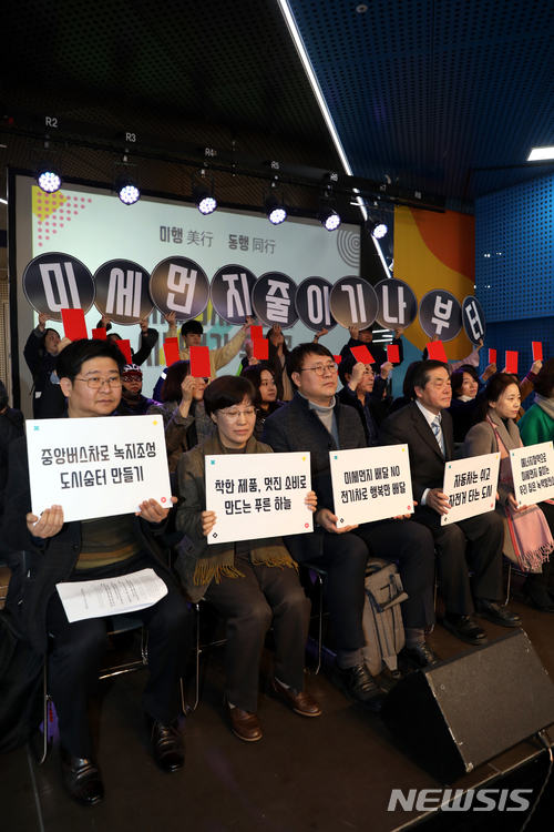 22ÀÏ ¿ÀÀü ¼¿ï Áß±¸ ¼¿ï½Ãû ³» ½Ã¹Îû¿¡¼ ¿¸° ¹Ì¼¼¸ÕÁö ÇØ°áÀ» À§ÇÑ ½Ã¹Î»çȸ¼±¾ð ±âÀÚȸ°ß¿¡¼ ¾ç¼±Èñ(¾ÕÁÙ ¿ÞÂÊ µÎ¹øÂ°) ¼¿ï YWCA »ç¹«ÃÑÀå ºñ·ÔÇÑ ¹Ì¼¼¸ÕÁö ÁÙÀ̱⠳ªºÎÅÍ ¼¿ï½Ã¹Î °øµ¿Çൿ °ü°èÀÚµéÀÌ '¹Ì¼¼¸ÕÁö ÁÙÀ̱⠳ªºÎÅÍ ½ÇõÇÏÀÚ' ÆÛÆ÷¸Õ½º¸¦ Çϰí ÀÖ´Ù.