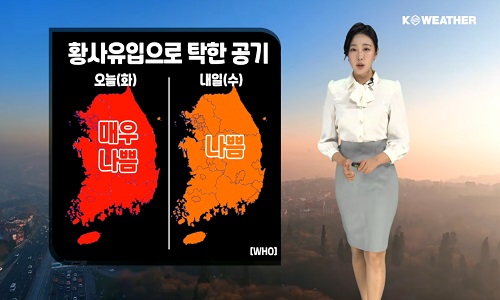 Ȳ»ç À¯ÀÔÀ¸·Î ´ë±â ÁúÀÌ ³ª»Þ´Ï´Ù. ¿À´Ã ¹ã±îÁö Àü±¹ ¹Ì¼¼¸ÕÁö ³óµµ´Â ¡®¸Å¿ì ³ª»Ý¡¯´Ü°è·Î À̾îÁö°Ú°í¿ä. ´ë±â°¡ Á¤Ã¼Çϸé¼, ³»Àϵµ Àü±¹ÀÌ ¡®³ª»Ý¡¯ ´Ü°è·Î °ø±â ŹÇϰڽÀ´Ï´Ù. À̵¿ÇÏ½Ç ¡¦
