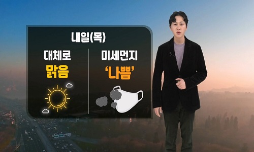 È帰 Çϴÿ¡ ¹Ì¼¼¸ÕÁö°¡ µÚµ¤¿© ³¯ÀÌ ¿ìÁßÃæÇѵ¥¿ä. ¿¬ÈÞ ÁÖ¸»±îÁöµµ ŹÇÑ °ø±â°¡ À̾îÁý´Ï´Ù. ¿À´Ã°ú ³»ÀÏ ¼öµµ±Ç°ú °¿ø, ÃæÃ»Àº ¹Ì¼¼¸ÕÁö ³óµµ ¡®¸Å¿ì ³ª»Ý¡¯ ´Ü°è±îÁö ¿À¸£°Ú°í¿ä, ±× ¹ÛÀÇ ³²ºÎÁö¹æ¡¦