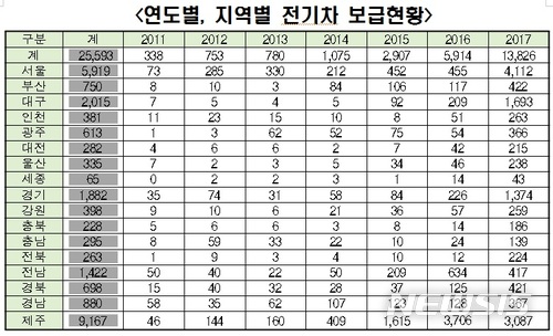 ÇÑÆí 2017³â¸» ±âÁØ Àü±¹¿¡ º¸±ÞµÈ Àü±âÂ÷´Â 2¸¸5593´ë·Î 2016³â 5914´ë, Áö³ÇØ 1¸¸3826´ë µî ¸Å³â °¡ÆÄ¸¥ »ó½Â¼¼¸¦ º¸À̰í ÀÖ´Ù.