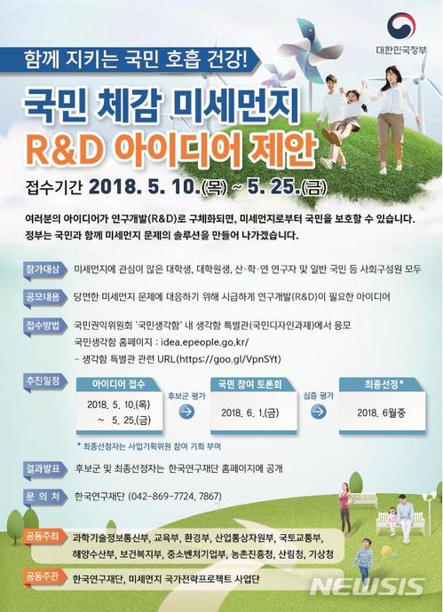 Á¤ºÎ´Â Áö³ 8ÀÏ ¿ÀÈÄ Á¤ºÎ°úõû»ç¿¡¼ ¹üºÎó ¹Ì¼¼¸ÕÁö ¿¬±¸°³¹ß(R&D) ÇùÀÇü¸¦ ±¸¼ºÇÏ°í ±¹°¡Àü·«ÇÁ·ÎÁ§Æ® µî Á¤ºÎ ÁÖµµ »ç¾÷°ú º´ÇàÇÒ '¹Ì¼¼¸ÕÁö ±¹¹Î ¾ÆÀ̵ð¾î R&D »ç¾÷'À» ÃßÁøÇϱâ·Î Çß´Ù°í 10ÀÏ ¹àÇû´Ù.