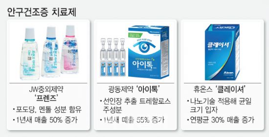 ¹Ì¼¼¸ÕÁö¿Í Ȳ»ç µî ´ë±âȯ°æ ¾ÇÈ¿Í ½º¸¶Æ®Æù »ç¿ë µî »ýȰ½À°üÀÌ ¸Â¹°¸®¸é¼ ¾È±¸°ÇÁ¶Áõ Ä¡·áÁ¦ ½ÃÀåÀÌ Áö¼ÓÀûÀ¸·Î Ä¿Áö°í ÀÖ´Ù. ÀÌ¿¡ µû¶ó Á¦¾à»çµéµµ ½ÅÁ¦Ç°À» Ãâ½ÃÇϰųª ±âÁ¸ Á¦Ç°¿¡ ´ëÇÑ ±â´É °³¼± µî °ü·Ã »ç¾÷ °È¿¡ ¿À» ¿Ã¸®°í ÀÖ´Ù.