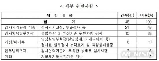 Á¡°Ë °á°ú, Àû¹ßµÈ °Ë»ç¼Ò´Â 44°÷À̸ç À§¹Ý ÇàÀ§´Â ÃÑ 46°ÇÀÌ´Ù.