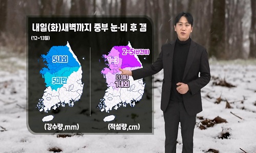 ¿ù¿äÀÏÀÎ ¿À´Ã(12ÀÏ¡¤¿ù) °ÇÑ ÇÑÆÄ°¡ À̾îÁö°Ú°í, Áߺθ¦ Áß½ÉÀ¸·Î ´« ¶Ç´Â ºñ°¡ ³»¸®°Ú´Ù. ¹Î°£±â»ó±â¾÷ ÄÉÀÌ¿þ´õ¿¡ µû¸£¸é ¿À´Ã(12ÀÏ¡¤¿ù)Àº ÁߺÎÁö¹æ°ú ÀüºÏ, °æºÏºÏºÎ´Â ºÏÂÊÀ» Áö³ª´Â ±â¾Ð°ñ¡¦