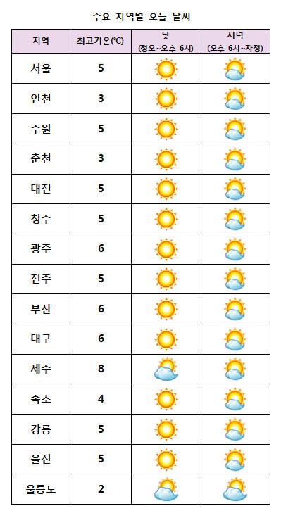 È¿äÀÏÀÎ ¿À´Ã(13ÀÏ)Àº Àü±¹ÀÌ ´ëü·Î ¸¼Àº °¡¿îµ¥ ±â¿Âµµ ¿µ»ó±ÇÀ» º¸À̰ÚÀ¸³ª ÀϺÎÁö¿ª¿¡¼ ¹Ì¼¼¸ÕÁö ³óµµ°¡ ³ô°Ô ³ªÅ¸³ª°Ú´Ù. ¹Î°£±â»ó±â¾÷ ÄÉÀÌ¿þ´õ´Â ¡°¿À´Ã ¿ì¸®³ª¶ó´Â Áß±¹ »óÇØºÎ±Ù¿¡¼ µ¿ÁøÇÏ´Â °í±â¾ÐÀÇ ¿µÇâÀ» ¹Þ¾Æ Àü±¹ÀÌ ´ëü·Î ¸¼°Ú´Ù¡±¸ç ¡°³·ºÎÅÍ ¼Ç³ÀÌ À¯ÀԵбâ¿ÂÀÌ Á¡Â÷ ¿À¸£¸ç ´çºÐ°£ Æò³â°ú ºñ½ÁÇϰųª Á¶±Ý ³ôÀº ±â¿ÂºÐÆ÷¸¦ º¸À̰ڴ١±°í ¿¹º¸Çß´Ù. ´Ù¸¸ ³»·úÁö¿ªÀ» Áß½ÉÀ¸·Î´Â ³·°ú ¹ãÀÇ ±â¿ÂÂ÷°¡ Å©°ÚÀ¸´Ï °Ç°°ü¸®¿¡ À¯ÀÇÇÏ´Â °ÍÀÌ ÁÁ°Ú´Ù. ¿À´Ã ³· ÃÖ°í±â¿ÂÀº ¼¿ï¡¤´ëÀü¡¤ÀüÁÖ 5¡É, ±¤ÁÖ¡¤´ë±¸¡¤ºÎ»ê 6¡É µî Àü±¹ÀÌ 3~8¡ÉÀÇ ºÐÆ÷¸¦ º¸À̰ڴÙ.
