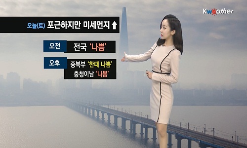 Åä¿äÀÏÀÎ ¿À´Ã(24ÀÏ¡¤Åä)µµ Å« ÃßÀ§ ¾øÀÌ Æ÷±ÙÇÏÁö¸¸ ¹Ì¼¼¸ÕÁö ³óµµ°¡ ³ô°Ô ³ªÅ¸³ª ÁÖÀǰ¡ ¿ä±¸µÈ´Ù. ¹Î°£±â»ó±â¾÷ ÄÉÀÌ¿þ´õ¿¡ µû¸£¸é ¿À´Ã(24ÀÏ¡¤Åä)Àº Áß±¹ ºÏµ¿Áö¹æ¿¡¼ ³²µ¿ÁøÇÏ´Â °í±â¾ÐÀÇ °¡ÀåÀÚ¸®¿¡ µé°Ú´Ù. Àü±¹ÀÌ ´ëü·Î ¸¼´Ù°¡ Á¡Â÷ ±¸¸§ ¸¹¾ÆÁö°Ú°í, Á¦ÁÖµµ´Â ¹ãºÎÅÍ Èå·ÁÁö°Ú´Ù. ÇÑÆí, µ¿Ç³ÀÇ ¿µÇâÀ» ¹Þ´Â °¿ø¿µµ¿Àº ´ÊÀº ¿ÀÈĺÎÅÍ Èå·ÁÁ® ´« ¶Ç´Â ºñ°¡ ¿À°Ú´Ù. ¿¹»ó °¼ö·®/Àû¼³(24~25ÀÏ) : °¿ø¿µµ¿ 5mm³»¿Ü/ 1~3cm°¡ µÇ°Ú´Ù. ¾ÆÄ§±â¿Â ¼¿ï 1¡É, Ãáõ -2¡É, ±¤ÁÖ 3¡É, ´ë±¸ 4¡É, °¸ª 0¡É·Î ½ÃÀÛÇϰڰí, Çѳ·¿¡´Â ¼¿ï°ú Ãáõ 8¡É, ±¤ÁÖ¿Í ºÎ»ê 13¡É, °¸ª 4¡É±îÁö ¿Ã¶ó Æ÷±ÙÇϰڴÙ. ³¯Àº Æ÷±ÙÇÏÁö¸¸ °ø±â°¡ ŹÇÏ´Ù. ¿ÀÀü¿¡ Àü±¹ÀÇ ¹Ì¼¼¸ÕÁö ³óµµ°¡ '³ª»Ý' ´Ü°è¸¦ º¸À̰ڰí, ¿ÀÈÄ¿¡´Â ÁߺϺÎÀÇ ¸ÕÁö ³óµµ°¡ ´Ù¼Ò ³·¾ÆÁö±ä ÇϰÚÁö¸¸ ÃæÃ» À̳²Àº Á¾ÀÏ '³ª»Ý' ¼öÁØÀ» À¯ÁöÇϰڴÙ. È£Èí±â°¡ ¾àÇÑ ºÐµéÀº À¯ÀÇÇØ¾ß°Ú´Ù. ¶Ç ¿©ÀüÈ÷ °¿øµ¿ÇؾȰú ÀÏºÎ ÃæÃ»µµ, ³²ºÎÁö¹æÀ» Áß½ÉÀ¸·Î ´ë±â°¡ °ÇÁ¶ÇÏ´Ù. ºÒ¾¾ °ü¸®¸¦ öÀúÈ÷ ÇØ¾ß°Ú´Ù. ¹Ù´ÙÀÇ ¹°°áÀº µ¿Çظչٴٿ¡ dz¶ûƯº¸°¡ ³»·ÁÁø °¡¿îµ¥ ÃÖ°í 4m±îÁö ³ô°Ô Àϰڰí, ±× ¹ÛÀÇ ÇØ»óµµ ¾à°£ ³ô°Ô ÀϰڴÙ. ³»ÀÏ(25ÀÏ¡¤ÀÏ)Àº °¿ø¿µµ¿°ú °æ»óÇØ¾È, Á¦ÁÖµµ¿¡ ´« ¶Ç´Â ºñ°¡ ¿À°Ú°í, ´ÙÀ½ ÁÖ ¼ö¿äÀÏ(28ÀÏ)°ú ¸ñ¿äÀÏ(1ÀÏ) »çÀÌ¿¡´Â Àü±¹¿¡ ºñ³ª ´«ÀÌ ³»¸± Àü¸ÁÀÌ´Ù.