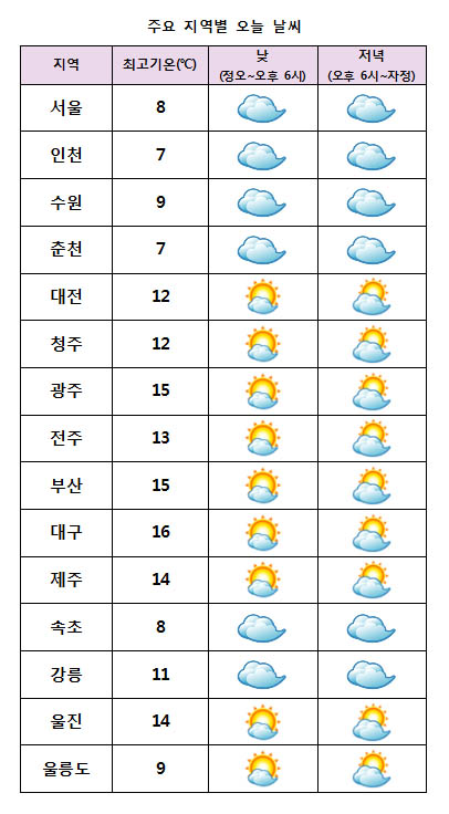 È¿äÀÏÀÎ ¿À´Ã(27ÀÏ)Àº Àü±¹ÀÌ Á¡Â÷ Èå·ÁÁ® ÁߺΠÀϺΠÁö¿ª¿¡ ¿ÀÈÄ ÇѶ§ ºø¹æ¿ïÀÌ ¶³¾îÁö°Ú´Ù. ¹Î°£±â»ó±â¾÷ ÄÉÀÌ¿þ´õ´Â ¡°¿À´Ã ¿ì¸®³ª¶ó´Â ³²ÇØ»ó¿¡ À§Ä¡ÇÑ °í±â¾ÐÀÇ ¿µÇâÀ» ¹Þ´Ù°¡ Á¡Â÷ ±× °¡ÀåÀÚ¸®¿¡ µé°Ú´Ù¡±¸ç ¡°ÁߺÎÁö¹æÀº ºÏÂÊÀ» Áö³ª´Â ¾àÇÑ ±â¾Ð°ñÀÇ ¿µÇâÀ» Á¡Â÷ ¹Þ°Ú´Ù¡±°í ¿¹º¸Çß´Ù. ÀÌ¾î ¡°Àü±¹ÀÌ ´ëü·Î ¸¼´Ù°¡ ÁߺÎÁö¹æÀº Á¡Â÷ Èå·ÁÁ® °æ±âºÏºÎ³»·ú°ú °¿ø¿µ¼ºÏºÎ´Â ¿ÀÈÄ¿¡ ºø¹æ¿ïÀÌ ¶³¾îÁö´Â °÷ÀÌ ÀÖ°Ú´Ù. ³²ºÎÁö¹æÀº Àú³áºÎÅÍ ±¸¸§ÀÌ ¸¹¾ÆÁö°Ú´Ù¡±°í ÀüÇß´Ù. ¿À´Ã ³· ÃÖ°í±â¿ÂÀº ¼¿ï¡¤¼ÓÃÊ 8¡É, ´ëÀü 12¡É, ±¤ÁÖ¡¤ºÎ»ê 15¡É µî Àü±¹ÀÌ 7~16¡ÉÀÇ ºÐÆ÷¸¦ º¸À̰ڴÙ. ³»ÀÏ(28ÀÏ)±îÁö ±â¿ÂÀº Æò³â°ú ºñ½ÁÇϰųª Á¶±Ý ³ô°Ú´Ù.