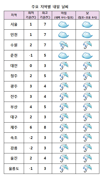 Àý±â»ó ÃáºÐÀÎ ³»ÀÏ ¼ö¿äÀÏ(21ÀÏ) ¿ì¸®³ª¶ó´Â Àü±¹ÀÌ È帰 °¡¿îµ¥ °÷°÷¿¡ ºñ ¶Ç´Â ´«ÀÌ ¿Ã Àü¸ÁÀÌ´Ù.