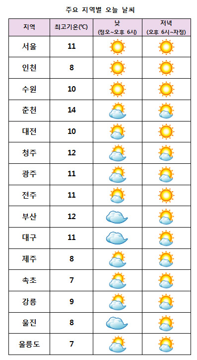 ¸ñ¿äÀÏÀÎ ¿À´Ã(22ÀÏ)Àº Àü±¹ÀÌ Á¡Â÷ ¸¼¾ÆÁö°Ú°í, Çѳ· ±â¿ÂÀº Æò³â°ú ºñ½ÁÇϰÚÀ¸³ª Àϱ³Â÷°¡ Å©°Ô ¹ú¾îÁö°Ú´Ù. ¹Î°£±â»ó±â¾÷ ÄÉÀÌ¿þ´õ´Â ¡°¿À´Ã ¿ì¸®³ª¶ó´Â Áß±¹ »óÇØºÎ±Ù¿¡ À§Ä¡ÇÑ °í±â¾ÐÀÇ °¡ÀåÀÚ¸®¿¡ µé°Ú´Ù¡±¸ç ¡°Àü±¹ÀÌ È帮´Ù°¡ Á¡Â÷ ¸¼¾ÆÁö°Ú°í ¿ÀÀü ÇѶ§ °¿ø¿µµ¿°ú ÃæÃ»À̳²Áö¿ªÀ» Áß½ÉÀ¸·Î »ê¹ßÀûÀ¸·Î ´«¹ß ¶Ç´Â ºø¹æ¿ïÀÌ ¶³¾îÁú ¶§°¡ ÀÖ°Ú´Ù¡±°í ¿¹º¸Çß´Ù. ÀÌ¾î ¡°¿À´Ã±îÁö ¿µ³²ÇؾÈÀº ¹Ù¶÷ÀÌ °ÇÏ°Ô ºÎ´Â °÷ÀÌ ÀÖ°Ú°í, ±× ¹ÛÀÇ Áö¿ªµµ ¾à°£ °ÇÏ°Ô ºÎ´Â °÷ÀÌ ÀÖ°Ú´Ù¡±¸ç ¡°´çºÐ°£ ±â¿ÂÀº Æò³â°ú ºñ½ÁÇϰÚÀ¸³ª, ³·°ú ¹ãÀÇ ±â¿ÂÂ÷°¡ Å©°Ú´Ù¡±°í ÀüÇß´Ù. ¿À´Ã ³· ÃÖ°í±â¿ÂÀº ¼¿ï¡¤±¤ÁÖ¡¤´ë±¸ 11¡É, ûÁÖ¡¤ºÎ»ê 12¡É, Á¦ÁÖ¡¤¿ïÁø 8¡É µî Àü±¹ÀÌ 7~14¡ÉÀÇ ºÐÆ÷¸¦ º¸À̰ڴÙ.