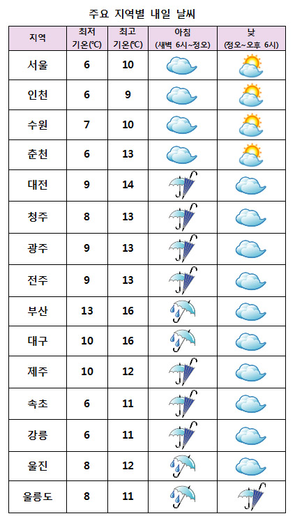 ÇѽÄ(ùÎãÝ)ÀÎ ³»ÀÏ(6ÀÏ¡¤±Ý)Àº ³·ºÎÅÍ ºñ°¡ Á¡Â÷ ±×Ä¡°Ú°í, °÷°÷¿¡ Ȳ»ç°¡ ³ªÅ¸³¯ °¡´É¼ºÀÌ ÀÖ°Ú´Ù.