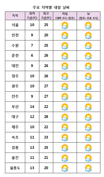 ¾ÆÄ§ ÃÖÀú±â¿ÂÀº 7¡É¿¡¼ 14¡É, ³· ÃÖ°í±â¿ÂÀº 20¡É¿¡¼ 28¡É°¡ µÇ°Ú´Ù.