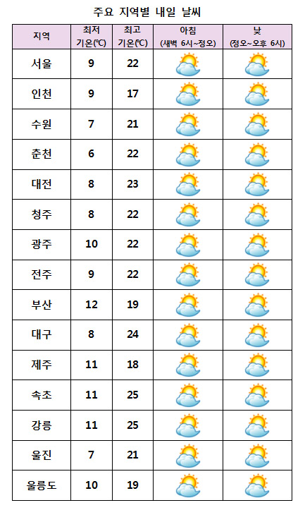 ¸ñ¿äÀÏÀÎ ³»ÀÏ(26ÀÏ)Àº Àü±¹ÀÌ ´ëü·Î ¸¼°Ú°í ³· ±â¿ÂÀÌ ¿À¸£¸ç Àϱ³Â÷°¡ Å©°Ô ¹ú¾îÁö°Ú´Ù.