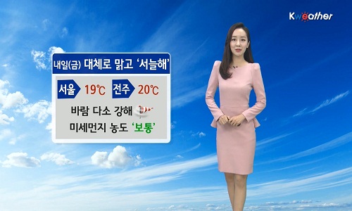 ±Ý¿äÀÏÀÎ ³»ÀÏ(4ÀÏ¡¤±Ý)Àº ´Ù½Ã ÇÏ´ÃÀÌ ¸¼¾ÆÁö°ÚÁö¸¸ ¹Ù¶÷ÀÌ °ÇÏ°Ô ºÒ¸ç ¼´ÃÇÒ °ÍÀ¸·Î º¸ÀδÙ. ¹Î°£±â»ó±â¾÷ ÄÉÀÌ¿þ´õ¿¡ µû¸£¸é ³»ÀÏ(4ÀÏ¡¤±Ý)Àº Áß±¹ »óÇØºÎ±Ù¿¡¼ µ¿ÁøÇÏ´Â °í±â¾ÐÀÇ ¿µÇâÀ» ¹Þ¾Æ Àü±¹ÀÌ ´ëü·Î ¸¼°Ú´Ù. ¾ÆÄ§±â¿ÂÀº 7~13¡É·Î ½Ò½ÒÇϰڰí, ³· ÃÖ°í±â¿ÂÀº 17~22¡É·Î ¿À´Ãº¸´Ù´Â ±â¿ÂÀÌ ¿À¸£°Ú´Ù. ´Ù¸¸, ¹Ù¶÷ÀÌ °ÇÏ°Ô ºÒ¾î ü°¨¿Âµµ´Â ³·°Ú´Ù. ¿ÊÂ÷¸²¿¡ À¯ÀÇÇØ¾ß°Ú´Ù. ¹Ì¼¼¸ÕÁö ³óµµ´Â 'º¸Åë' ´Ü°è·Î ´ë±â »óÅ´ ±ú²ýÇϰڴÙ. ¹Ù´ÙÀÇ ¹°°áÀº ´ëºÎºÐ ÇØ»ó¿¡ dz¶ûƯº¸°¡ ³»·ÁÁø °¡¿îµ¥ ÃÖ°í 3~4m±îÁö ¸Å¿ì ³ô°Ô ÀϰڴÙ. ÁÖ¸»ºÎÅÍ´Â ´Ù½Ã ±â¿ÂÀÌ ¿À¸£°Ú°í, ÀÏ¿äÀÏ(6ÀÏ)¿¡´Â Àü±¹¿¡ ºñ°¡ ³»¸± °ÍÀ¸·Î Àü¸ÁµÈ´Ù.