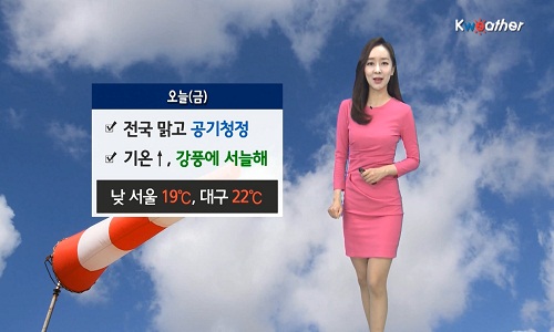 ±Ý¿äÀÏÀÎ ¿À´Ã(4ÀÏ¡¤±Ý)Àº Àü±¹ ÇÏ´ÃÀÌ ¸¼°Ú°í, °ø±âÁúµµ ±ú²ýÇϰڴÙ. ´Ù¸¸, °Ç³ÀÌ ºÒ¸ç ´Ù¼Ò ¼´ÃÇÒ °ÍÀ¸·Î ¿¹»óµÈ´Ù. ¹Î°£±â»ó±â¾÷ ÄÉÀÌ¿þ´õ¿¡ µû¸£¸é ¿À´Ã(4ÀÏ¡¤±Ý)Àº Áß±¹ »óÇØ ºÎ±Ù¿¡¼ µ¿ÁøÇÏ´Â °í±â¾ÐÀÇ ¿µÇâÀ» ¹Þ¾Æ Àü±¹ÀÌ ´ëü·Î ¸¼°Ú´Ù. ¾ÆÄ§±â¿Â ¼¿ï 8¡É, Ãáõ 7¡É, ÀüÁÖ¿Í ´ë±¸ 9¡É, °¸ª 12¡É·Î ½ÃÀÛÇϰڰí, Çѳ·¿¡´Â ¼¿ï 19¡É, Ãáõ 21¡É, ÀüÁÖ 20¡É, ´ë±¸¿Í °¸ª 22¡É±îÁö ¿À¸£°Ú´Ù. ´Ù¸¸, µ¿ÇؾÈÀ» Áß½ÉÀ¸·Î °Ç³Æ¯º¸°¡ ³»·ÁÁö´Â µî ¹Ù¶÷ÀÌ °ÇÏ°Ô ºÒ°Ú°í, ±× ¹ÛÀÇ Áö¿ªµµ ¹Ù¶÷ÀÌ ¾à°£ °ÇÏ°Ô ºÒ¸é¼ ¼´ÃÇÏ°Ô ´À²¸Áú ¼ö ÀÖ°Ú´Ù. ¹Ì¼¼¸ÕÁö ³óµµ´Â 'º¸Åë' ´Ü°è·Î ´ë±âÁúÀº ûÁ¤ÇϰڴÙ. ¹Ù´ÙÀÇ ¹°°áÀº ³²ÇØ»óÀ¸·Î ÃÖ°í 3m, µ¿ÇØ»óÀ¸·Î ÃÖ°í 4m±îÁö ¸Å¿ì ³ô°Ô ÀϰڴÙ. ¾î¸°À̳¯ÀÎ ³»ÀÏ(5ÀÏ¡¤Åä)Àº ´Ù½Ã ±â¿ÂÀÌ ¿À¸£¸é¼ µû¶æÇØÁö°Ú°í, ÀÏ¿äÀÏ(6ÀÏ)¿¡´Â Àü±¹¿¡ ºñ°¡ ³»¸± °ÍÀ¸·Î º¸ÀδÙ. ´Ù¸¸, °¿ø¿µµ¿°ú ³²ºÎÁö¹æÀº ´ëüÈÞÀÏÀÎ ¿ù¿äÀÏ(7ÀÏ)±îÁöµµ ºñ°¡ À̾îÁú Àü¸ÁÀÌ´Ù.