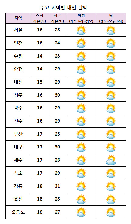 ´çºÐ°£ ±â¿ÂÀº Æò³âº¸´Ù ³ô°Ú°í Àϱ³Â÷°¡ 10¡É ÀÌ»ó Å©°Ú´Ù. ƯÈ÷ ÃæºÏ, ÀüºÏ, ´ë±¸ µî ÀϺΠ³»·úÁö¿ªÀº ³»ÀÏ(15ÀÏ)±îÁö ÀÏ»çÈ¿°ú·Î ³· ÃÖ°í±â¿ÂÀÌ 30¡É±îÁö ¿À¸£¸ç ´þ°Ú´Ù.