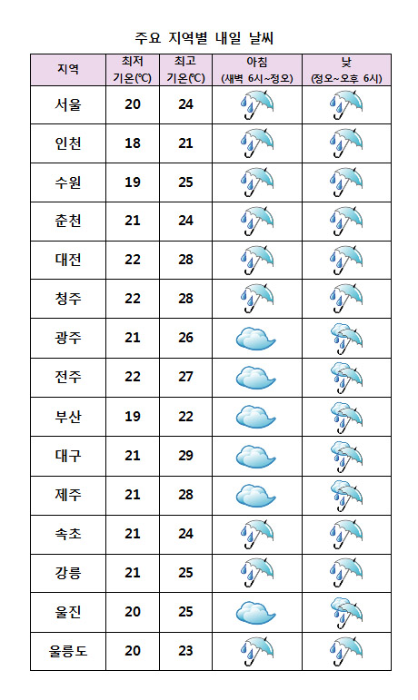 ¾ÆÄ§ ÃÖÀú±â¿ÂÀº 18¡É¿¡¼ 22¡É·Î Æò³âº¸´Ù ³ô°ÚÀ¸³ª, ³· ÃÖ°í±â¿ÂÀº 21¡É¿¡¼ 29¡É·Î Æò³â°ú ºñ½ÁÇÑ ºÐÆ÷¸¦ º¸À̰ڴÙ.