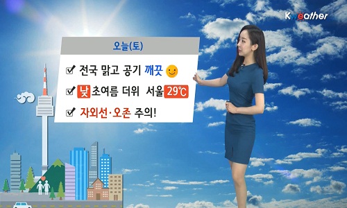 Åä¿äÀÏÀÎ ¿À´Ã(16ÀÏ¡¤Åä)Àº ´ëü·Î ¸¼Àº °¡¿îµ¥ ´þ°Ú°í, Àڿܼ±°ú ¿ÀÁ¸ÀÇ ³óµµµµ ³ô°Ô ³ªÅ¸³ª ÁÖÀǰ¡ ¿ä±¸µÈ´Ù. ¹Î°£±â»ó±â¾÷ ÄÉÀÌ¿þ´õ¿¡ µû¸£¸é ¿À´Ã(16ÀÏ¡¤Åä)Àº µ¿ÇØ»ó¿¡ À§Ä¡ÇÑ °í±â¾ÐÀÇ ¿µÇâÀ» ¹Þ¾Æ Àü±¹ÀÌ ´ëü·Î ¸¼°ÚÁö¸¸ µ¿ÇؾÈÀº ±¸¸§ ¸¹°Ú´Ù. ¾ÆÄ§±â¿Â ¼¿ï 16¡É, Ãáõ 12¡É, ±¤ÁÖ 18¡É, ´ë±¸ 17¡É, °¸ª 15¡É·Î ½ÃÀÛÇϰڰí, Çѳ·¿¡´Â ¼¿ï 29¡É, Ãáõ 28¡É, ±¤ÁÖ 30¡É±îÁö ¿Ã¶ó ´þ°Ú´Ù. ´Ù¸¸, µ¿Ç³ÀÇ ¿µÇâÀ» ¹Þ´Â µ¿ÇؾÈÀº ºÎ»ê 23¡É, °¸ª 21¡É¿¡ ¸Ó¹°¸ç ¼±¼±ÇϰڴÙ. ¹Ì¼¼¸ÕÁö ³óµµ´Â 'º¸Åë' ´Ü°è·Î ´ë±âÁúÀº ûÁ¤ÇϰڴÙ. ¹Ù´ÙÀÇ ¹°°áÀº ³²ÇØ¿Í Á¦ÁÖÀüÇØ»ó¿¡ dz¶ûƯº¸°¡ ³»·ÁÁø °¡¿îµ¥ ³²ÇØ»óÀ¸·Î ÃÖ°í 3.5m, µ¿ÇØ»óÀ¸·Î ÃÖ°í 4m±îÁö ¸Å¿ì ³ô°Ô ÀϰڴÙ. ´çºÐ°£ ¸¼°í ´õ¿î ³¯¾¾°¡ À̾îÁö°Ú°í, ´ÙÀ½ ÁÖ È¿äÀÏ(19ÀÏ)°ú ¸ñ¿äÀÏ(21ÀÏ) »çÀÌ¿¡´Â Á¦ÁÖµµ¿¡ ºñ°¡ ³»¸± Àü¸ÁÀÌ´Ù.