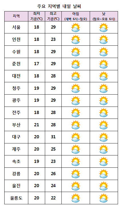 ¾ÆÄ§ ÃÖÀú±â¿ÂÀº 17¡É~21¡É, ³· ÃÖ°í±â¿ÂÀº 22¡É~31¡ÉÀÇ ºÐÆ÷¸¦ º¸À̰ڴÙ.