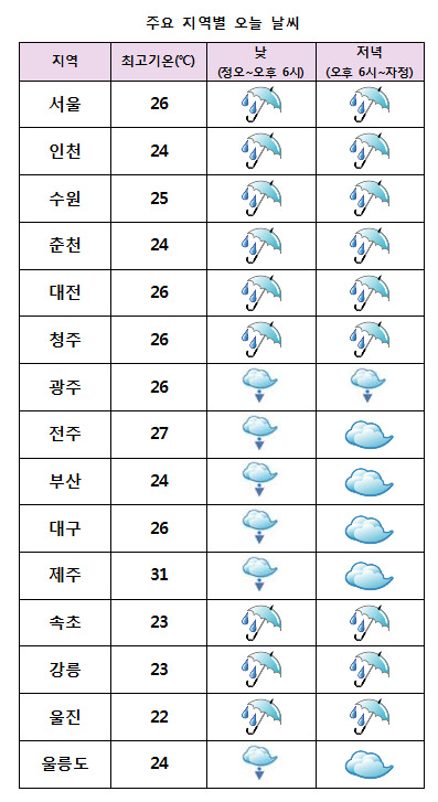 ³· ÃÖ°í±â¿ÂÀº ¼¿ï¡¤´ëÀü¡¤±¤ÁÖ 26¡É, ÀÎõ¡¤´ë±¸ 24¡É, Á¦ÁÖ 31¡É µî Àü±¹ÀÌ 22¡É¿¡¼ 31¡ÉÀÇ ºÐÆ÷¸¦ º¸À̰ڴÙ.