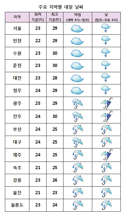 ¾ÆÄ§ ÃÖÀú±â¿ÂÀº 21¡É¿¡¼ 25¡É, ³· ÃÖ°í±â¿ÂÀº 23¡É¿¡¼ 30¡É°¡ µÇ°Ú´Ù.