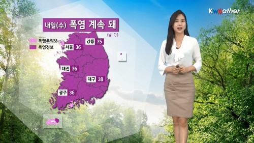 ³· ÃÖ°í±â¿ÂÀº ¼¿ï‧´ëÀü‧ûÁÖ‧±¤ÁÖ 36¡É, ÀÎõ‧¼ö¿ø 33¡É, Ãáõ‧°¸ª 35¡É, ÀüÁÖ‧ºÎ»ê‧¼ÓÃÊ‧¿ïÁø 34¡É, ´ë±¸ 38¡É°¡ ¿¹»óµÈ´Ù. ¹Ù´ÙÀÇ ºÒ°áÀº Àü ÇØ»ó¿¡¼ 0.5~1.5m·Î ÀÜÀÜÇÏ°Ô ÀϰڴÙ.