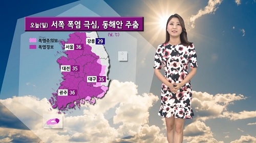 ¿À´Ã ³· ÃÖ°í±â¿ÂÀº ¼¿ï¡¤¼ö¿ø¡¤Ã»ÁÖ¡¤±¤ÁÖ 36¡É, ´ëÀü¡¤´ë±¸ 35¡É, °¸ª 29¡É µî Àü±¹ÀÌ 27~37¡ÉÀÇ ºÐÆ÷·Î ¿¹»óµÈ´Ù.