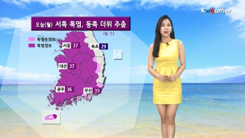 ¿À´Ã ³· ÃÖ°í±â¿ÂÀº ¼¿ï‧¼ö¿ø‧´ëÀü 37¡É, ÀÎõ‧Ãáõ‧ûÁÖ‧±¤ÁÖ‧ÀüÁÖ 36¡É, ºÎ»ê 33¡É, ´ë±¸ 35¡É, Á¦ÁÖ 31¡É, ¼ÓÃÊ 29¡É, °¸ª 30¡É, ¿ïÁø 28¡É°¡ ¿¹»óµÈ´Ù.