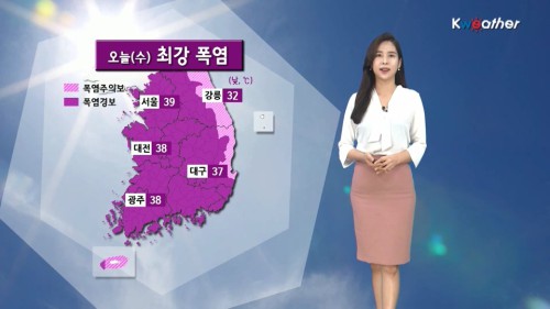 ¿À´Ã ³· ÃÖ°í±â¿ÂÀº ¼¿ï‧¼ö¿ø‧Ãáõ 39¡É, ÀÎõ‧´ë±¸ 37¡É, ´ëÀü‧ûÁÖ‧±¤ÁÖ‧ÀüÁÖ 38¡É, ºÎ»ê 24¡É, Á¦ÁÖ‧°¸ª 32¡É, ¿ïÁø‧¼ÓÃÊ 33¡É°¡ ¿¹»óµÈ´Ù.