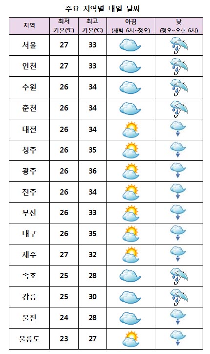 ¾ÆÄ§ ÃÖÀú±â¿ÂÀº 23¡É¿¡¼ 27¡É, ³· ÃÖ°í±â¿ÂÀº 28¡É¿¡¼ 36¡É°¡ µÇ°Ú´Ù.