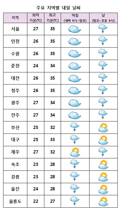 ¾ÆÄ§ ÃÖÀú±â¿ÂÀº 22¡É¿¡¼ 27¡É, ³· ÃÖ°í±â¿ÂÀº 27¡É¿¡¼ 35¡É°¡ ¿¹»óµÈ´Ù.