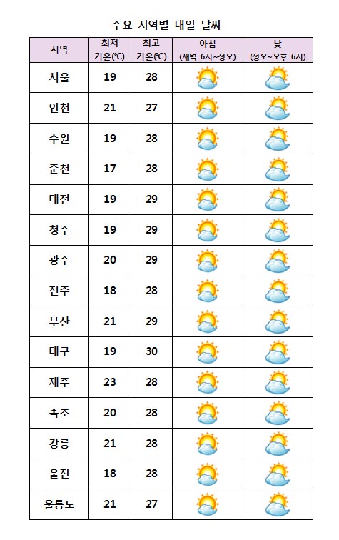 ¾ÆÄ§ ÃÖÀú±â¿ÂÀº 17¡É¿¡¼ 23¡É, ³· ÃÖ°í±â¿ÂÀº 27¡É¿¡¼ 30¡É°¡ µÇ°Ú´Ù.