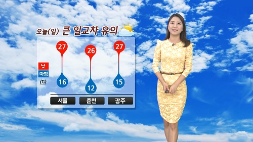 ³· ÃÖ°í±â¿ÂÀº ¼¿ï¡¤±¤ÁÖ 27¡É, Ãáõ¡¤´ëÀü¡¤´ë±¸ 26¡É, ºÎ»ê¡¤Á¦ÁÖ 25¡É µî Àü±¹ÀÌ 20~27¡ÉÀÇ ºÐÆ÷·Î ¿¹»óµÈ´Ù. ¾ÆÄ§¡¤Àú³áÀº ¼±¼±ÇÑ ¹Ý¸é, Çѳ·¿£ ÇÞ»ìÀÌ ¶ß°Å¿ö ´Ù¼Ò ´þ°Ô ´À²¸Áú ¼ö ÀÖ°Ú´Ù. Å« Àϱ³Â÷¿¡ °¢º°ÇÑ À¯Àǰ¡ ¿ä¸ÁµÈ´Ù.