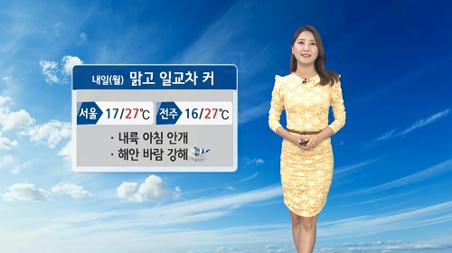 ³»ÀÏ ¾ÆÄ§ ÃÖÀú±â¿ÂÀº ¼¿ï¡¤±¤ÁÖ 17¡É, ´ëÀü 16¡É, ºÎ»ê 20¡É µî Àü±¹ÀÌ 16~21¡ÉÀÇ ºÐÆ÷¸¦ º¸À̰ڰí, ³· ÃÖ°í±â¿ÂÀº ¼¿ï¡¤±¤ÁÖ 27¡É, Ãáõ¡¤´ëÀü¡¤´ë±¸¡¤Á¦ÁÖ 25¡É µî Àü±¹ÀÌ 20~27¡ÉÀÇ ºÐÆ÷·Î ¿¹»óµÈ´Ù. ¾ÆÄ§¡¤Àú³áÀº ¼±¼±ÇÑ ¹Ý¸é, Çѳ·¿£ ÇÞ»ìÀÌ ¶ß°Å¿ö ´Ù¼Ò ´þ°Ô ´À²¸Áú ¼ö ÀÖ°Ú´Ù. Å« Àϱ³Â÷¿¡ °¢º°È÷ À¯ÀÇÇÏ´Â °ÍÀÌ ÁÁ°Ú´Ù.