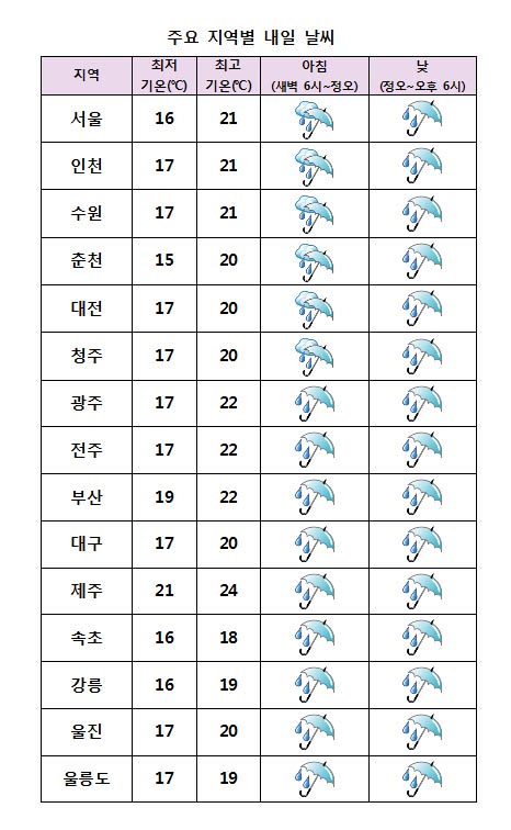 Àü±¹ÀÌ ´ëü·Î ¸¼´Ù°¡ ¿ÀÈĺÎÅÍ ±¸¸§ÀÌ ¸¹¾ÆÁö°Ú°í ³²ÇؾȰú Á¦ÁÖµµ´Â Â÷Â÷ Èå·ÁÁ® Á¦ÁÖµµ´Â ¿ÀÈĺÎÅÍ, ³²ºÎÁö¹æÀº ¹ãºÎÅÍ ºñ°¡ ¿À°Ú´Ù. °¿ø¿µµ¿°ú °æºÏµ¿ÇؾÈÀº µ¿Ç³ÀÇ ¿µÇâÀ¸·Î ¹ãºÎÅÍ ºñ°¡ ¿À°Ú´Ù. * ¿¹»ó °¼ö·®(4~6ÀÏ) - Á¦ÁÖµµ : 200~500mm(¸¹Àº °÷ Á¦Áֻ갣 700mm ÀÌ»ó) - ³²ºÎ, °¿ø¿µµ¿, ¿ï¸ªµµ, µ¶µµ : 100~300mm(¸¹Àº °÷ 500mm ÀÌ»ó) - ÁߺÎÁö¹æ(°¿ø¿µµ¿ Á¦¿Ü) : 80~150mm(¸¹Àº °÷ 200mm ÀÌ»ó)
