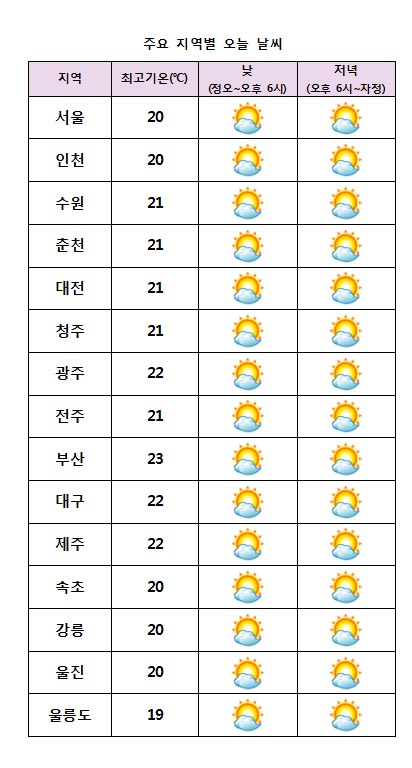 ³· ±â¿ÂÀº ¼¿ï¡¤°¸ª 20¡É, ´ëÀü¡¤ÀüÁÖ 21¡É, ºÎ»ê 23¡É µî Àü±¹ÀÌ 19~23¡É°¡ µÇ°Ú´Ù.
