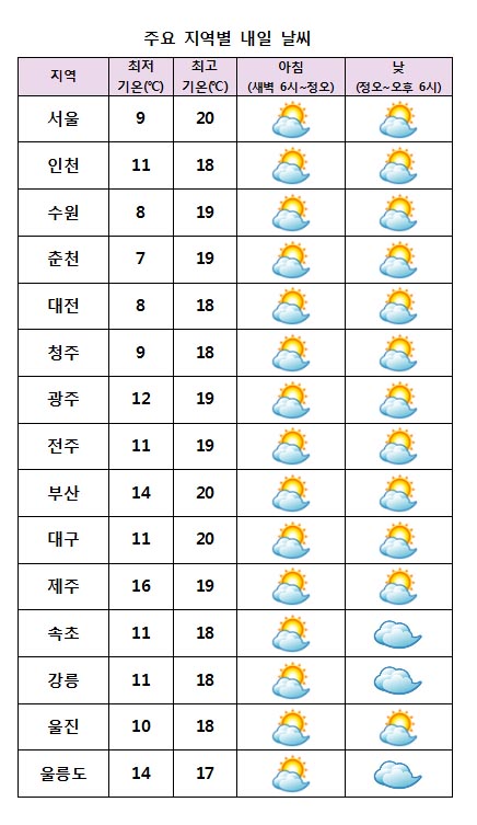 ¾ÆÄ§ ÃÖÀú±â¿ÂÀº 7¡É¿¡¼ 16¡É, ³· ÃÖ°í±â¿ÂÀº 17¡É¿¡¼ 20¡É°¡ µÇ°Ú´Ù.