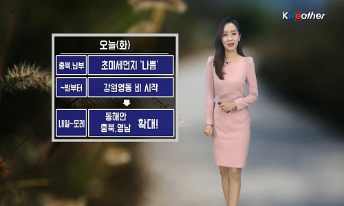 ¼ö¿äÀÏÀÎ ³»ÀÏ(17ÀÏ¡¤¼ö)Àº Âù¹Ù¶÷ÀÌ ºÒ¸ç ½Ò½ÒÇϰÚÁö¸¸ °ø±â´Â Â÷Ãû ±ú²ýÇØÁú °ÍÀ¸·Î ¿¹»óµÈ´Ù. ¹Î°£±â»ó±â¾÷ ÄÉÀÌ¿þ´õ¿¡ µû¸£¸é ³»ÀÏ(17ÀÏ¡¤¼ö)Àº Áß±¹ ºÏµ¿Áö¹æ¿¡ À§Ä¡ÇÑ °í±â¾ÐÀÇ ¿µÇâÀ» ¹Þ°Ú´Ù. Àü±¹¿¡ °¡²û ±¸¸§ ¸¹°ÚÁö¸¸ µ¿Ç³ÀÇ ¿µÇâÀ» ¹Þ´Â µ¿ÇؾÈÀº ºñ°¡ ³»¸± °ÍÀ¸·Î º¸ÀδÙ. ¿¹»ó °¼ö·® : °¿ø¿µµ¿(16~18ÀÏ) 30~80mm, °æ»óµ¿ÇؾÈ(17~18ÀÏ) 20~50mm, °¿ø¿µ¼(17~18ÀÏ), ÃæºÏ°ú °æ»ó³»·ú(18ÀÏ) 5mm ³»¿ÜÀÇ ºñ°¡ ¿À°Ú´Ù. ¾ÆÄ§ ÃÖÀú±â¿ÂÀº 7~13¡É ¿À´Ãº¸´Ù ³·°Ô ½ÃÀÛÇϰڰí, ³· ÃÖ°í±â¿ÂÀº 14~21¡É·Î Á¾ÀÏ ½Ò½ÒÇϰڴÙ. ¹Ì¼¼¸ÕÁö ³óµµ´Â ´Ù½Ã 'º¸Åë'¿¡¼ 'ÁÁÀ½' ´Ü°è¸¦ µÇã°Ú´Ù. ´Ù¸¸, ³²ºÎÁö¹æÀº ¿ÀÀü±îÁö ¸ÕÁö³óµµ°¡ 'ÇѶ§ ³ª»Ý' ´Ü°è¸¦ º¸ÀÏ ¶§°¡ ÀÖ°Ú´Ù. ¹Ù´ÙÀÇ ¹°°áÀº µ¿ÇØ»óÀ¸·Î ºñ°¡ ¿À´Â °¡¿îµ¥ ÃÖ°í 3m±îÁö ³ô°Ô Àϰڰí, ±× ¹ÛÀÇ ÇØ»óµµ ÃÖ°í 2.5m±îÁö ¾à°£ ³ô°Ô ÀϰڴÙ. µ¿ÇؾÈÀÇ ºñ´Â ¸ð·¹(18ÀÏ¡¤¸ñ)±îÁö À̾îÁö°Ú°í, ±× ¹ÛÀÇ ³¯Àº ´ëü·Î ¸¼Àº °¡¿îµ¥ Àϱ³Â÷°¡ Å©°Ô ¹ú¾îÁú °ÍÀ¸·Î Àü¸ÁµÈ´Ù.