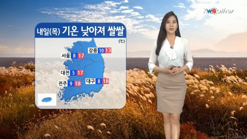 ³»ÀÏ ¾ÆÄ§ ÃÖÀú±â¿ÂÀº ¼¿ï‧´ë±¸ 8¡É, ÀÎõ 9¡É, ¼ö¿ø‧ûÁÖ‧ÀüÁÖ 6¡É, Ãáõ‧±¤ÁÖ 7¡É, ´ëÀü 5¡É, ºÎ»ê 12¡É, Á¦ÁÖ 14¡É, ¼ÓÃÊ‧°¸ª‧¿ïÁø 10¡É°¡ µÇ°Ú°í, ³· ÃÖ°í±â¿ÂÀº ¼¿ï‧ÀÎõ‧´ëÀü‧ûÁÖ 17¡É, ¼ö¿ø‧±¤ÁÖ‧ÀüÁÖ‧´ë±¸‧Á¦ÁÖ 18¡É, Ãáõ 16¡É, ºÎ»ê 19¡É, ¼ÓÃÊ 12¡É °¸ª 13¡É°¡ ¿¹»óµÈ´Ù.