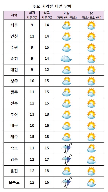 ¾ÆÄ§ ÃÖÀú±â¿ÂÀº 9¡É¿¡¼ 15¡É, ³· ÃÖ°í±â¿ÂÀº 12¡É¿¡¼ 18¡É°¡ ¿¹»óµÈ´Ù.