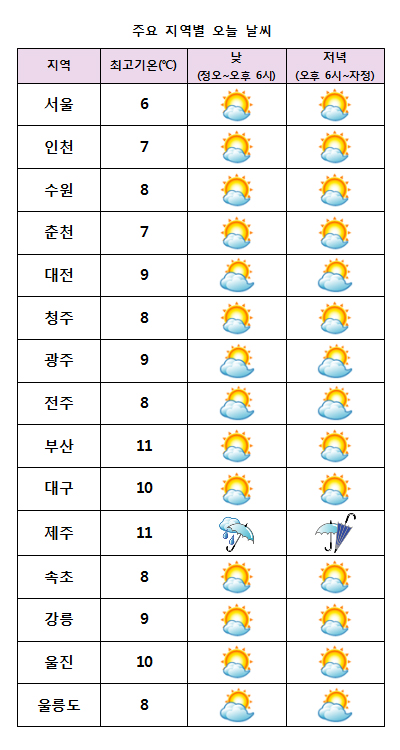 ºÏ¼ÂÊ¿¡¼ Âù °ø±â°¡ À¯ÀÔµÇ¸é¼ ÁߺÎÁö¹æÀº ¿À´Ã ¾ÆÄ§ ±â¿ÂÀÌ ´ëºÎºÐ ¿µÇϱǿ¡ µé°Ú°í, ³²ºÎ³»·úµµ ³»ÀÏ(23ÀÏ)Àº ¾ÆÄ§ ±â¿ÂÀÌ ¿µÇϱǿ¡ µå´Â µî ¿Ã °¡À» µé¾î °¡Àå ³·Àº ±â¿Â ºÐÆ÷¸¦ º¸À̰ڴÙ.