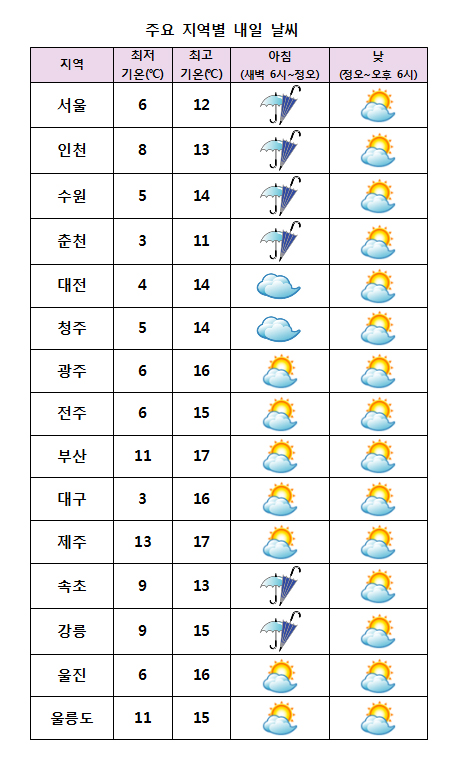 ¾ÆÄ§ÃÖÀú±â¿ÂÀº 3¡É¿¡¼ 11¡É, ³· ÃÖ°í±â¿ÂÀº 11¡É¿¡¼ 17¡É°¡ µÇ°Ú´Ù.
