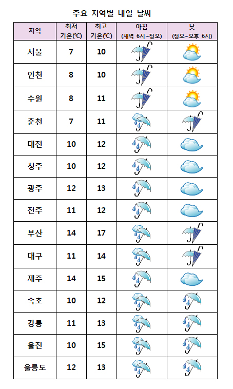 * ¿¹»ó °¼ö·®(3~4ÀÏ) - ³²ÇؾÈ, Á¦ÁÖµµ : 10~30mm - ±× ¹ÛÀÇ Àü±¹ : 5~10mm