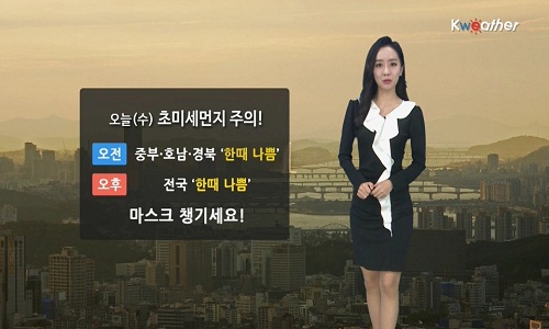 ¼ö¿äÀÏÀÎ ¿À´Ã(19ÀÏ¡¤¼ö)µµ ½º¸ð±×ÀÇ ¿µÇâÀ¸·Î Ãʹ̼¼¸ÕÁö ³óµµ°¡ £°Ô ³ªÅ¸³ª°Ú´Ù. ¹Î°£±â»ó±â¾÷ ÄÉÀÌ¿þ´õ¿¡ µû¸£¸é ¿À´Ã(19ÀÏ¡¤¼ö)Àº Á¦ÁÖ³²ÂÊÇØ»ó¿¡¼ µ¿ÁøÇÏ´Â °í±â¾ÐÀÇ °¡ÀåÀÚ¸®¿¡ µé¸é¼ Àü±¹ Çϴÿ¡ Á¡Â÷ ±¸¸§ÀÌ ¸¹¾ÆÁö°Ú´Ù. ¾ÆÄ§ ÃÖÀú±â¿ÂÀº -4~6¡É·Î ¿µ»ó±ÇÀ» ȸº¹ÇÑ °÷ÀÌ ¸¹°Ú°í, ³· ÃÖ°í±â¿ÂÀº 5~14¡É±îÁö ¿Ã¶ó ¿ÂÈÇϰڴÙ. ÇÑÆí, °è¼ÓÇØ ´ë±âÁúÀÌ Å¹ÇϰڴÙ. ¹ã»çÀÌ Áß±¹¹ß ½º¸ð±×°¡ À¯ÀÔµÇ¸é¼ Ãʹ̼¼¸ÕÁö ³óµµ°¡ £°Ô ³ªÅ¸³ª°Ú´Ù. ¿ÀÀü¿¡ °¿ø¿µµ¿À» Á¦¿ÜÇÑ ÁßºÎ¿Í È£³², °æºÏºÎÅÍ ³óµµ°¡ ³ô¾ÆÁö±â ½ÃÀÛÇØ ¿ÀÈÄ¿¡´Â Àü±¹ÀûÀ¸·Î °ø±â°¡ ³ªºüÁö°Ú´Ù. ¿ÜÃ⠽à ¹Ì¼¼¸ÕÁö¿ë ¸¶½ºÅ©¸¦ ¹Ýµå½Ã ì°Ü¾ß°Ú´Ù. °ø±âµµ ¾È ÁÁÀºµ¥ ´ë±â±îÁö °ÇÁ¶ÇÏ´Ù. µ¿ÇؾÈÀ» Áß½ÉÀ¸·Î °ÇÁ¶Æ¯º¸°¡ ³»·ÁÁ®ÀÖ°í, ÇØ¾È°ú »êÁö·Î´Â ¹Ù¶÷±îÁö °ÇÏ°Ô ºÒ°Ú´Ù. ÈÀç»ç°í°¡ ³ª±â ½¬¿î ¸¸Å ºÒ¾¾°ü¸®¿¡ À¯ÀÇÇØ¾ß°Ú´Ù. ¹Ù´ÙÀÇ ¹°°áÀº µ¿ÇØ»óÀ¸·Î dz¶ûƯº¸°¡ ³»·ÁÁø °¡¿îµ¥ ¹°°áÀÌ ÃÖ°í 4m±îÁö ¸Å¿ì ³ô°Ô ÀϰڴÙ. ´çºÐ°£ ¿ÂÈÇÑ ³¯¾¾°¡ °è¼ÓµÇ°Ú´Ù. ´Ù¸¸, ³»ÀÏ(20ÀÏ¡¤¸ñ)Àº Á¦ÁÖµµ¿Í ³²Çؾȿ¡, ÁÖ¸»¿¡´Â Á¦ÁÖµµ¿¡ ºñ°¡ ³»¸± Àü¸ÁÀÌ´Ù.