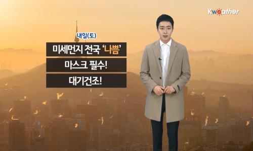 ³»ÀÏ(12ÀÏ‧Åä)Àº ±¹³»¿Ü¿¡¼ À¯ÀÔµÈ ¹Ì¼¼¸ÕÁö¿Í Áß±¹¹ß ½º¸ð±×±îÁö ´õÇØÁ® Àü±¹ÀÇ Ãʹ̼¼¸ÕÁö ³óµµ ¡®³ª»Ý¡¯ ¼öÁØÀ» º¸À̰ڴÙ. ¹Ù±ù Ȱµ¿Àº ÀÚÁ¦ÇÏ°í ¿ÜÃ⠽ÿ¡´Â Ȳ»ç¿ë ¸¶½ºÅ©¸¦ ²À Âø¿ëÇϱ⠹ٶõ´Ù. ¹Î°£±â»ó±â¾÷ ÄÉÀÌ¿þ´õ´Â ¡°³»ÀÏÀº Á¦ÁÖµµ ³²ÂÊÇØ»óÀ» Áö³ª´Â ±â¾Ð°ñÀÇ ¿µÇâÀ» ¹Þ°Ú´Ù. ÁߺÎÁö¹æÀº ±¸¸§ÀÌ ¸¹´Ù°¡ Á¡Â÷ ¸¼¾ÆÁö°Ú°í, ³²ºÎÁö¹æÀº »õº®ºÎÅÍ ¿ÀÀü »çÀÌ¿¡ ºñ ¶Ç´Â ´«ÀÌ ¿À´Ù°¡ Á¡Â÷ ±×Ä¡°Ú´Ù.¡±°í ÀüÇß´Ù. ÄÉÀÌ¿þ´õ ¿¹º¸°ü°èÀÚ´Â ¡°À̹ø ÁÖ±îÁö´Â ¼Ç³ÀÇ ¿µÇâÀ¸·Î ÀÎÇØ Å« ÃßÀ§´Â ¾øÀ» °ÍÀ¸·Î º¸ÀÌÁö¸¸, °ÇÁ¶ÇÑ ´ë±â´Â °è¼Ó µÇ°Ú´Ù¡±¸ç ºÒ¾¾°ü¸®¿¡ À¯ÀÇ ÇÒ °ÍÀ» ´çºÎÇß´Ù. * ¿¹»ó °¼ö·®(12ÀÏ) - Á¦ÁÖµµ, ¿ï¸ªµµ(11~12ÀÏ) : 5~20mm - ³²ºÎ(12ÀÏ) : 5mm ³»¿Ü * ¿¹»ó Àû¼³(12ÀÏ) -Á¦Áֻ갣, Áö¸®»ê ºÎ±Ù, ¿ï¸ªµµ(11~12ÀÏ) : 1cm ³»¿Ü * ¹Ì¼¼¸ÕÁö ¿¹º¸ - ȯ°æºÎ ±âÁØ : Àü±¹ ¡®³ª»Ý¡¯ - WHO ±âÁØ : Àü±¹ ¡®¸Å¿ì ³ª»Ý¡¯ ¾ÆÄ§ ÃÖÀú±â¿Â ¼¿ï‧ÀÎõ 0¡É, ¼ö¿ø‧ûÁÖ -1¡É, Ãáõ -5¡É, Àü±¸‧´ë±¸ 0¡É, ±¤ÁÖ 2¡É, ºÎ»ê 5¡É, ¼ÓÃÊ‧¿ïÁø 0¡É¸¦ º¸À̰ڴÙ. ³· ÃÖ°í±â¿ÂÀº ¼¿ï‧¼ö¿ø 6¡É, Ãáõ‧ûÁÖ 7¡É, ´ëÀü‧ÀüÁÖ 8¡É, ±¤ÁÖ‧ºÎ»ê 10¡É, °¸ª‧¿ïÁø 9¡É°¡ ¿¹»óµÈ´Ù. ³²ÇØ¿Í µ¿ÇØ»óÀ¸·Î´Â ºñ ¼Ò½ÄÀÌ ÀÖ°Ú´Ù. ¹Ù´ÙÀÇ ¹°°áÀº µ¿ÇØ ÃÖ°í 2.5m·Î ¾à°£ ³ô°Ô ÀÏ°Ú°í ±× ¹ÛÀÇ ÇØ»óÀº ÀÜÀÜÇÏ°Ô ÀϰڴÙ. Ç×ÇØ³ª Á¶¾÷ÇÏ´Â ¼±¹ÚÀº Âü°íÇϽñ⠹ٶõ´Ù. À̹ø ÁÖ±îÁö Å« ÇÑÆÄ´Â ¾øÀ» °ÍÀ¸·Î º¸ÀδÙ. ´Ù¸¸ ´ÙÀ½ ÁÖ È¿äÀÏ(15ÀÏ)ºÎÅÍ ±â¿ÂÀÌ ³»·Á°¡±â ½ÃÀÛÇØ ¼ö¿äÀÏ(16ÀÏ)¿¡´Â ¼¿ïÀÇ ¾ÆÄ§±â¿Â -8µµ±îÁö ¶³¾îÁö´Â µî ´Ù½Ã Ãß¿öÁú °ÍÀ¸·Î Àü¸ÁµÈ´Ù.