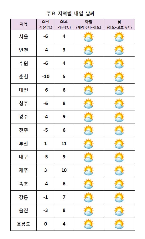 ¾ÆÄ§ ÃÖÀú±â¿ÂÀº -10¡É¿¡¼ 1¡É, ³· ÃÖ°í±â¿ÂÀº 3¡É¿¡¼ 11¡É°¡ µÇ°Ú´Ù.