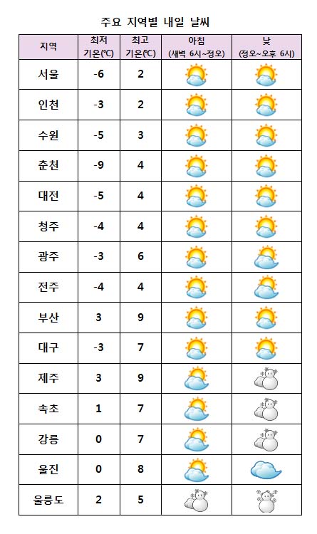 ±Ý¿äÀÏÀÎ ³»ÀÏ(25ÀÏ)Àº Àü±¹ÀÌ ´ëü·Î ¸¼Àº °¡¿îµ¥ Àü³²ÇؾȰú ¿µµ¿Áö¹æ¿¡ Èå·ÁÁ® ´«À̳ª ºñ°¡ ³»¸®°Ú´Ù. ¹Î°£±â»ó±â¾÷ ÄÉÀÌ¿þ´õ´Â ¡°³»ÀÏ ¿ì¸®³ª¶ó´Â Áß±¹ ºÏºÎÁö¹æ¿¡¼ È®ÀåÇÏ´Â °í±â¾ÐÀÇ ¿µÇâÀ» ¹Þ°Ú´Ù¡±¸ç ¡°Àü±¹ÀÌ ´ëü·Î ¸¼°ÚÀ¸³ª ÇØ±âÂ÷·Î ÀÎÇØ »ý¼ºµÈ ±¸¸§´ëÀÇ ¿µÇâÀ¸·Î Àü³²¼ÇؾȰú Á¦ÁÖµµ¿¡ ´ÊÀº ¿ÀÈĺÎÅÍ ¸ð·¹(26ÀÏ) »õº®±îÁö ´« ¶Ç´Â ºñ°¡ ¿À°Ú´Ù¡±°í ¿¹º¸Çß´Ù. °¿ø¿µµ¿Àº ´ÊÀº ¿ÀÈĺÎÅÍ ¸ð·¹(26ÀÏ)³·±îÁö, °æºÏºÏºÎµ¿ÇؾÈÀº Àú³áºÎÅÍ ¸ð·¹(26ÀÏ)»õº®±îÁö, ¿ï¸ªµµ, µ¶µµ´Â ¾ÆÄ§ºÎÅÍ ¸ð·¹(26ÀÏ) ´ÊÀº ¿ÀÈıîÁö ´«¡¤ºñ°¡ ³»¸®°Ú´Ù. Ãæ³²¼ÇؾȰú ÀüºÏ¼ÇؾÈ, È£³²³»·ú¿¡µµ ¹ã ÇѶ§ »ê¹ßÀûÀ¸·Î ´«¹ßÀÌ ³¯¸®´Â °÷ÀÌ ÀÖ°Ú´Ù. * ¿¹»óÀû¼³(25~26ÀÏ) - ¿ï¸ªµµ, µ¶µµ : 10~30cm - °¿ø¿µµ¿, °æºÏºÏºÎµ¿ÇØ¾È : 3~8cm - Àü¶ó¼ÇؾÈ, Á¦ÁÖµµ, °æºÏ³²ºÎµ¿ÇؾÈ(26ÀÏ) : 1cm³»¿Ü ¾ÆÄ§ ÃÖÀú±â¿ÂÀº -9¡É¿¡¼ 3¡É, ³· ÃÖ°í±â¿ÂÀº 2¡É¿¡¼ 9¡É°¡ µÇ°Ú´Ù.