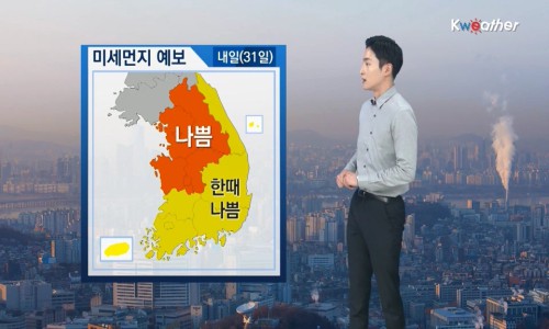 ¿À´Ã(30ÀÏ‧¼ö) ¼¿ïÀÇ ¾ÆÄ§±â¿Â -2.8µµ, ´ëÀü -4µµ·Î ¾îÁ¦º¸´Ù 3µµ °¡·® ³ôÀº ±â¿ÂÀÌ ³ô¾Æ Å« ÃßÀ§´Â ¾ø¾ú°í, Çѳ·¿¡´Â ÃÖ°í±â¿Â ¼¿ï 7µµ±îÁö ¿À¸£´Â µî ¿ÂÈÇÑ ³¯¾¾¸¦ º¸À̰ڴÙ. ´Ù¸¸, ³»ÀÏ(31ÀÏ‧¸ñ) ¿ÀÈĺÎÅÍ Âù °ø±â°¡ À¯ÀÔµÇ¸é¼ ´Ù½Ã ±â¿ÂÀÌ ³»·Á°¥ °ÍÀ¸·Î º¸ÀÌ´Ï °©ÀÛ½º·¯¿î ±â¿Âº¯È¿¡ À¯ÀÇÇϱ⠹ٶõ´Ù. ¹Î°£±â»ó±â¾÷ ÄÉÀÌ¿þ´õ´Â ¡°³»ÀÏ(31‧¸ñ)Àº Á¦ÁÖµµ ³²ÂÊ ÇØ»óÀ» Áö³ª´Â ±â¾Ð°ñÀÇ ¿µÇâÀ» ¹Þ´Ù°¡ Â÷Â÷ ¹þ¾î³ª°Ú´Ù¡±°í ÀüÇß´Ù. ÄÉÀÌ¿þ´õ ¿¹º¸ °ü°èÀÚ´Â ¡°ÁߺÎÁö¹æÀº ±¸¸§ÀÌ ¸¹°Ú°í ³²ºÎÁö¹æÀº ¿ÀÈĺÎÅÍ Á¡Â÷ Èå·ÁÁö°Ú´Ù. Àü³²ÇØ¾È ¹× Á¦ÁÖµµ´Â Èå·ÁÁ® ¹ãºÎÅÍ ºñ°¡ ¿À°Ú°í, ³»ÀÏ(31ÀÏ‧¸ñ) »õº®¿¡ ±× ¹ÛÀÇ ³²ºÎÁö¹æÀ¸·Î±îÁö ºñ ¶Ç´Â ´«ÀÌ È®´ëµÇ°Ú´Ù¡±°í ¸»Çß´Ù. * ¿¹»ó °¼ö·®(30~31ÀÏ) - Á¦ÁÖµµ: 20~50mm(¸¹Àº °÷ 80mm ÀÌ»ó)- °¿ø¿µµ¿(31ÀÏ), ¿ï¸ªµµ/µ¶µµ(1ÀϱîÁö): 10~20mm - Àü³²ÇØ¾È Àü¶óµµ(Àü³²ÇØ¾È Á¦¿Ü 31ÀÏ), °æºÏ³²ºÎ(31ÀÏ) °æºÏµ¿ÇؾÈ(31ÀÏ): 5~10mm *¿¹»ó Àû¼³·®(31ÀÏ) -°¿ø¿µµ¿, °æºÏµ¿ÇØ¾È Á¦Áֻ갣, ¿ï¸ªµµ, µ¶µµ : 5~10cm(¸¹Àº °÷ 20cm ÀÌ»ó) -³²ºÎ³»·ú : 1~3cm * (ÃÊ)¹Ì¼¼¸ÕÁö ¿¹º¸ - ȯ°æºÎ ±âÁØ : ¿ÀÀü ÁߺÎ(°¿ø¿µµ¿ Á¦¿Ü) ¡®³ª»Ý¡¯, ±× ¹ÛÀÇ Àü±¹ ¡®ÇѶ§ ³ª»Ý¡¯ / ¿ÀÈÄ Àü±¹ ¡®º¸Å롯 - WHO ±âÁØ : ¿ÀÀü ÁߺÎ(°¿ø¿µµ¿ Á¦¿Ü) ¡®¸Å¿ì ³ª»Ý¡¯, ±× ¹ÛÀÇ Àü±¹ ¡®³ª»Ý¡¯ / ¿ÀÈÄ Àü±¹ ¡®ÇÑ´ë ³ª»Ý¡¯ ¾ÆÄ§ ÃÖÀú±â¿ÂÀº ¼¿ï‧¼ö¿ø -2¡É, ÀÎõ‧Ãáõ -4¡É, ´ëÀü‧ûÁÖ -1¡É, ±¤ÁÖ‧´ë±¸ 1¡É, ºÎ»ê‧ Á¦ÁÖµµ 5¡É, ¼ÓÃÊ‧¿ïÁø 2¡É, °¸ª 3¡É¸¦ º¸À̰ڴÙ. ³· ÃÖ°í±â¿ÂÀº ¼¿ï‧´ëÀü 1¡É, ÀÎõ‧¼ö¿ø 0¡É, Ãáõ 3¡É, ±¤ÁÖ‧´ë±¸ 2¡É, ÀüÁÖ 1¡É ºÎ»ê 5¡É‧Á¦ÁÖ 6¡É, °¸ª‧¿ïÁø 4¡É, ¼ÓÃÊ 3¡É°¡ ¿¹»óµÈ´Ù. Àü ÇØ»ó¿¡ ºñ ¼Ò½ÄÀÌ ÀÖ°Ú°í µ¿ÇØ»óÀ¸·Î´Â ´«ÀÌ ¿À´Â °÷ÀÌ ÀÖ°Ú´Ù. ¹Ù´ÙÀÇ ¹°°áÀº µ¿ÇØ ÃÖ°í 3m, ¼ÇØ¿Í ³²ÇØ 2m·Î ÀϰÚÀ¸´Ï Ç×ÇØ³ª Á¶¾÷ÇÏ´Â ¼±¹ÚÀº °¢º°È÷ À¯ÀÇÇϱ⠹ٶõ´Ù. ³»ÀÏ(31ÀÏ‧¸ñ) ¿ÀÈĺÎÅÍ Âù¹Ù¶÷ÀÌ ºÒ±â ½ÃÀÛÇØ ¸ð·¹(1ÀÏ‧±Ý) ¼¿ïÀÇ ¾ÆÄ§±â¿ÂÀº -7µµ±îÁö ¶³¾îÁö¸é¼ ´Ù½Ã ¹Ý¦ ÃßÀ§°¡ ã¾Æ ¿Ã °ÍÀ¸·Î º¸ÀδÙ. ÀÏ¿äÀÏ(3ÀÏ)¿¡´Â Àü±¹¿¡ ºñ ¶Ç´Â ´«ÀÌ ³»¸± °ÍÀ¸·Î Àü¸ÁµÈ´Ù.