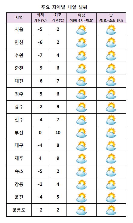 ¾ÆÄ§ ÃÖÀú±â¿ÂÀº -9¡Éµµ¿¡¼ 0¡É, ³· ÃÖ°í±â¿ÂÀº 2¡É¿¡¼ 10¡É°¡ µÇ°Ú´Ù.
