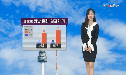 ±Ý¿äÀÏÀÎ ³»ÀÏ(22ÀÏ¡¤±Ý)µµ ¿©ÀüÈ÷ °í³óµµÀÇ ¹Ì¼¼¸ÕÁö ³óµµ°¡ ³ô°Ô ³ªÅ¸³ª È£Èí±â °Ç°¿¡ ÁÖÀǰ¡ ¿ä±¸µÈ´Ù. ¹Î°£±â»ó±â¾÷ ÄÉÀÌ¿þ´õ¿¡ µû¸£¸é ³»ÀÏ(22ÀÏ¡¤±Ý)Àº µ¿ÇØ»ó¿¡ À§Ä¡ÇÑ °í±â¾ÐÀÇ °¡ÀåÀÚ¸®¿¡ µé°ÚÀ¸³ª, Á¦ÁÖµµ´Â Á¦ÁÖ³²ÂÊÇØ»óÀ» Áö³ª´Â ±â¾Ð°ñÀÇ ¿µÇâÀ» ¹Þ°Ú´Ù. Àü±¹ÀÌ Á¡Â÷ ±¸¸§ÀÌ ¸¹¾ÆÁö°Ú°í, Á¦ÁÖµµ´Â ´ëü·Î È帰 °¡¿îµ¥ ¿ÀÈÄ ÇѶ§ ºñ³ª ´«ÀÌ ¿À´Â °÷ÀÌ ÀÖ°Ú´Ù. ¿¹»ó °¼ö·®(22ÀÏ) : Á¦ÁÖµµ 5mm³»¿Ü, ¿¹»ó Àû¼³(22ÀÏ) : Á¦Áֻ갣 1~3cm°¡ µÇ°Ú´Ù. ¾ÆÄ§ ÃÖÀú±â¿ÂÀº -4~7¡É, ³· ÃÖ°í±â¿ÂÀº 6~13¡É·Î Æò³â°ú ºñ½ÁÇϰųª Á¶±Ý ³ôÀº ±â¿ÂºÐÆ÷¸¦ º¸À̰ڰí, ¹Ù¶÷ÀÌ ¾àÇØ ü°¨¿Âµµ´Â ±â¿Â°ú ºñ½ÁÇÒ °ÍÀ¸·Î º¸ÀδÙ. ´Ù¸¸, Àϱ³Â÷°¡ Å« ¸¸Å ÁÖÀÇÇØ¾ß°Ú´Ù. ¹Ì¼¼¸ÕÁö ³óµµ´Â ±¹³»/¿Ü ¿À¿°¹°ÁúÀÇ ¿µÇâÀ¸·Î Àü±¹ '³ª»Ý', °¿ø¿µµ¿Àº 'ÇѶ§ ³ª»Ý' ´Ü°èÀÇ ³óµµ¸¦ º¸À̰ڴÙ. ¹Ì¼¼¸ÕÁö¿ë ¸¶½ºÅ©ÀÇ Âø¿ëÀÌ ¹Ýµå½Ã ÇÊ¿äÇϰڴÙ. ¹Ù´ÙÀÇ ¹°°áÀº ³²ÇØ»óÀ¸·Î ÃÖ°í 3m, ±× ¹ÛÀÇ ÇØ»óÀº ´ëü·Î ÀÜÀÜÇÏ°Ô ÀϰڴÙ. ÁÖ¸»ºÎÅÍ ´çºÐ°£ ³· ±â¿ÂÀÌ Á¡Á¡ ´õ ¿À¸£¸é¼ ÇÑÃþ ´õ ¿ÂÈÇØÁö°Ú´Ù. ´Ù¸¸, Àϱ³Â÷°¡ Å©´Ù´Â Á¡Àº À¯ÀÇÇØ¾ß°Ú´Ù. ÇÑÆí, Åä¿äÀÏ(23ÀÏ)¿¡´Â °¿ø¿µµ¿¿¡ ºñ³ª ´«ÀÌ ³»¸± Àü¸ÁÀÌ´Ù.